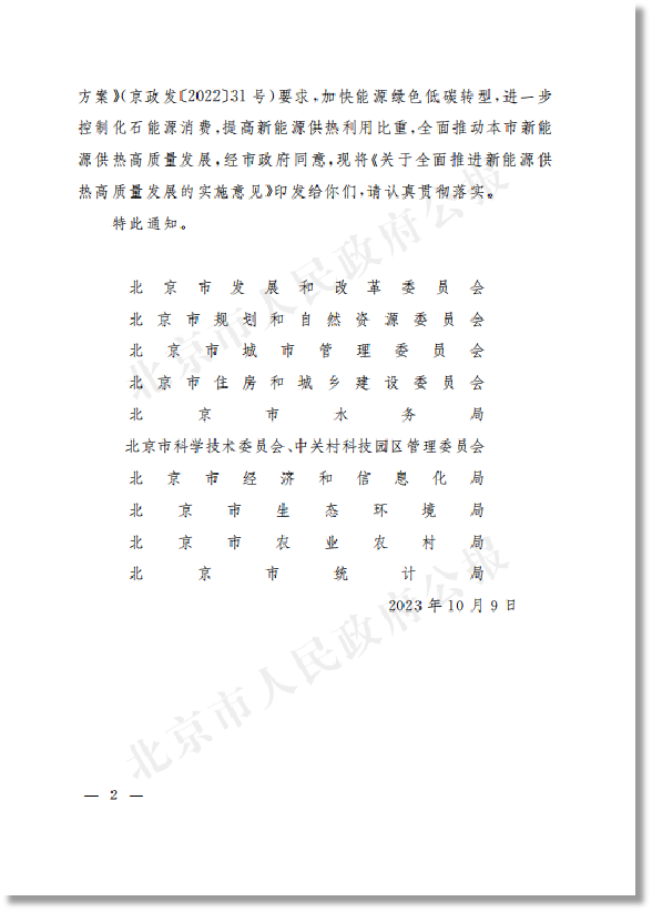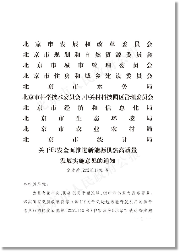北京市发展和改革委员会等十部门关于印发《全面推进新能源供热高质量发展实施意见》